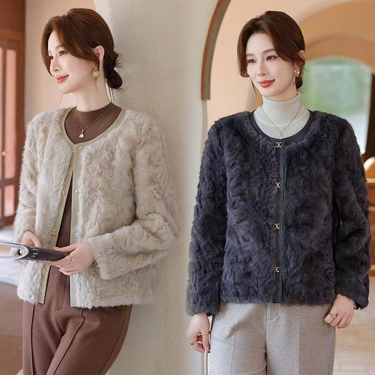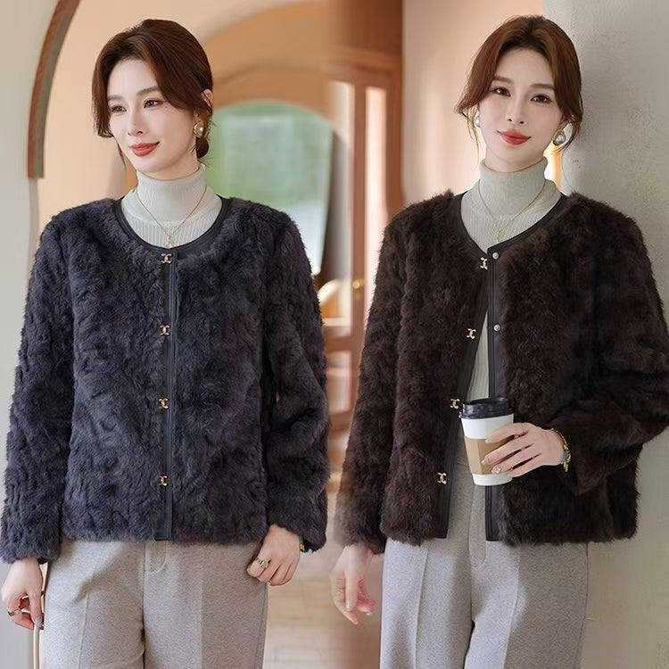 At the intersection of tenderness and delicacy, this plush coat is an elegant interpretation of autumn and winter. Its exquisite texture wraps you in warmth, while the metallic buttons enhance its style. It exudes composure in a lazy manner, making every appearance as charming as the winter sun—both warm and graceful.